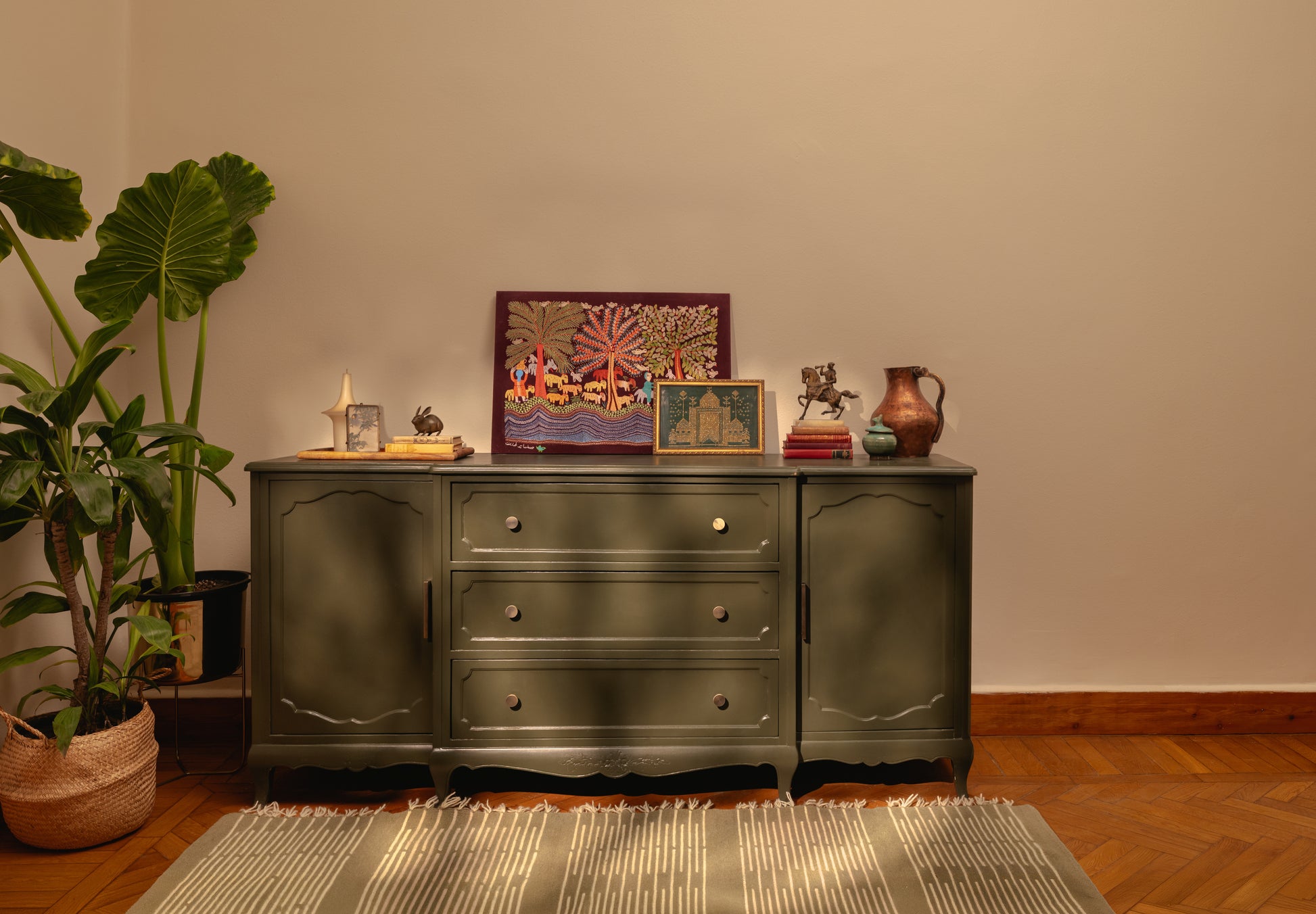 Rooted in the brick patterns of Cairo’s streets and courtyards, The Masonry Collection transforms architectural rhythm into woven texture. Handcrafted in wool and finished in warm neutrals, each kilim rug carries the calm, grounded spirit of Cairene earth and design.